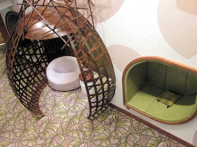 The Hideaway ist ein neuer Rückzugsort auf der Celebrity Silhouette. Vom Atrium aus einsehbar, eröffnet sich „The Hideaway“ wie ein kleiner Wald. Die Ruheinsel ist tatsächlich von Bäumen inspiriert, so finden sich Sitzgelegenheiten, die an Baumhäuser erinnern, kleine Nester, Baumhöhlen und kugelige Sessel, die wie schützende Eierschalen ihre Besucher umhüllen.