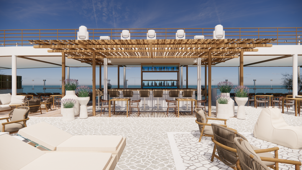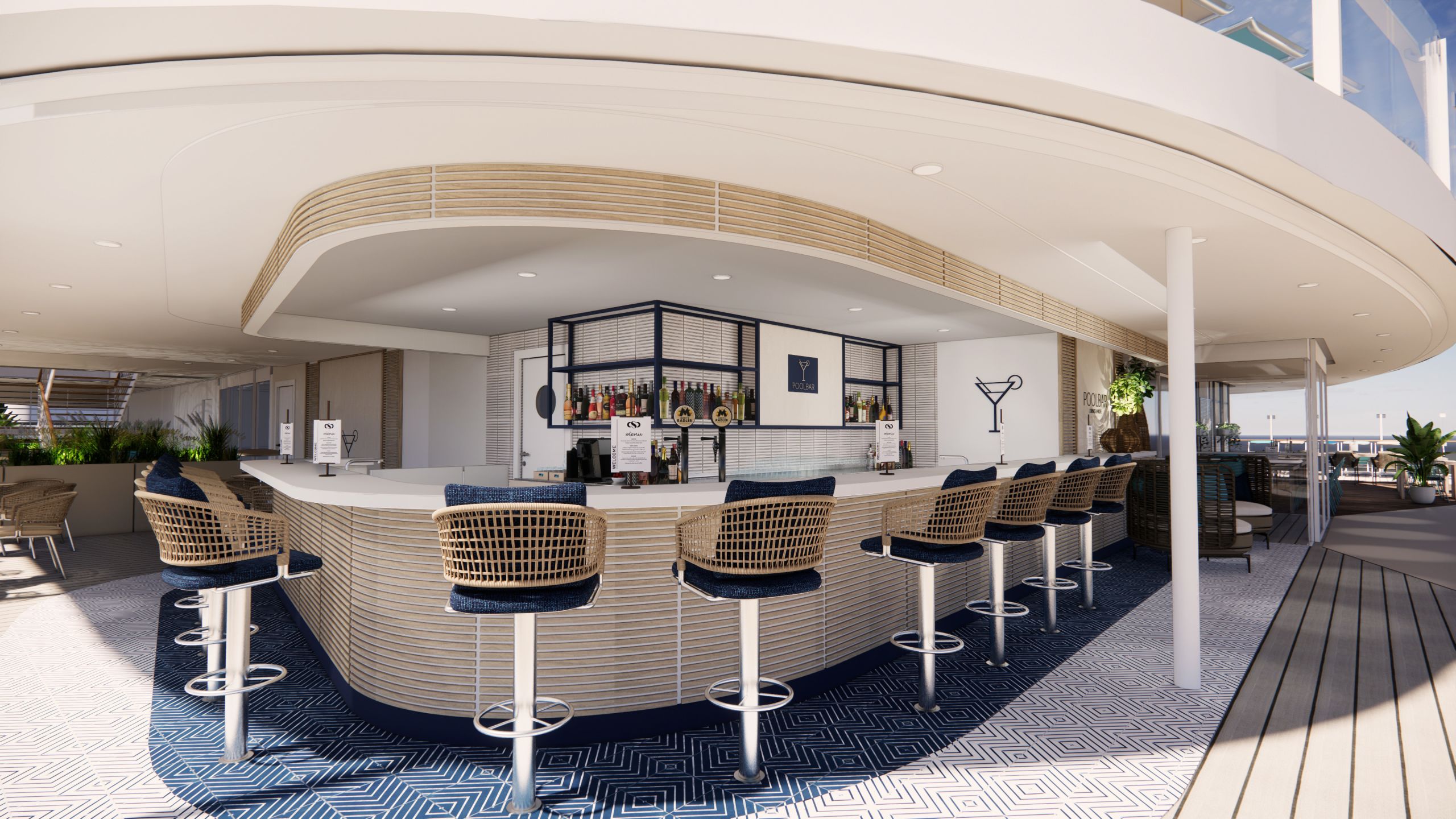 Vergangene Woche gewährte TUI Cruises erstmalige Einblicke in das Bar-Konzept des achten Schiffes der Wohlfühl-Flotte. Konsequent setzt die deutsche Reederei das Credo „Genuss neu erleben“ im kulinarischen Programm des neuen Schiffes um. Alle gastronomischen Bereiche in dem schwimmenden Hotel sollen die Messlatte etwas höher legen und den Gästen so manches unvergessliches kulinarisches Erlebnis bieten. Die vielfältigen Möglichkeiten an Bord einen Cocktail bei Sonnenuntergang zu genießen, präsentierte der Reiseanbieter nun mit dem Versprechen, neben den verschiedenen inkludierten Bars auf den Außendecks und im Innenbereich, gäbe es nun drei neue Highlights, die die Drink-Kultur auf ein neues Level heben würden. Das breitgefächerte Angebot an inkludierten Getränken können die Passagiere in der Outdoor-Bar im Heck des Schiffes testen. Gemütliche Loungemöbel auf einer großzügigen Fläche laden zum Verweilen ein, während die erhöhte Lage der Bar wunderbare Ausblicke über das Treiben auf dem Schiff sowie auf die Umgebung ermöglichen soll. Bei diesen Voraussetzungen können die Gäste den Abend auf See entspannt ausklingen lassen.